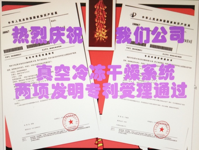 热力庆祝我公司冻干机共晶点共融点分析测试系统;微型冻干工艺系统;360°单手旋转压盖装置;发明专利受理。KeyiATS冻干机外观设计专利;Keyi.ATS真空冷冻干燥系统实用新型专利受理.